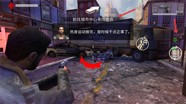 2、完成初期戰斗后前往城市中心尋找物資,途中注意收集資源,同時應對可能出現的僵尸,確保安全抵達目標區域。