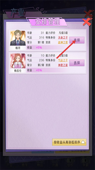 豪門家主模擬器游戲怎么安排成員管理產業