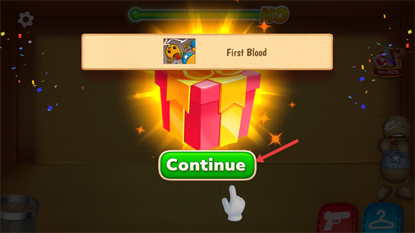 4、完成射擊任務后會獲得獎勵禮盒點擊Continue繼續游戲,解鎖新成就,提升游戲等級,體驗更多射擊內容。