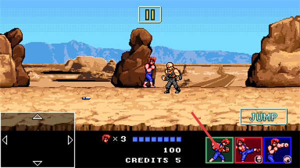 3、角色系統還原經典人物,比利與吉米保留標志技能,新增角色擴展戰斗選擇,每個角色擁有專屬招式表。