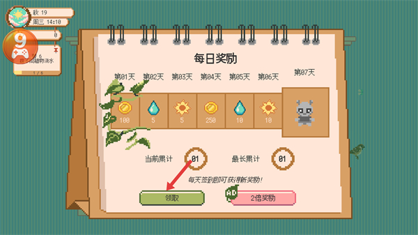 2、記得每天領取每日獎勵累計簽到天數可解鎖更豐厚的獎勵,如金幣、水滴、太陽和特殊道具。
