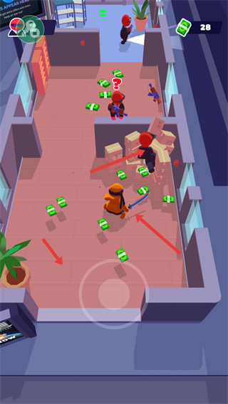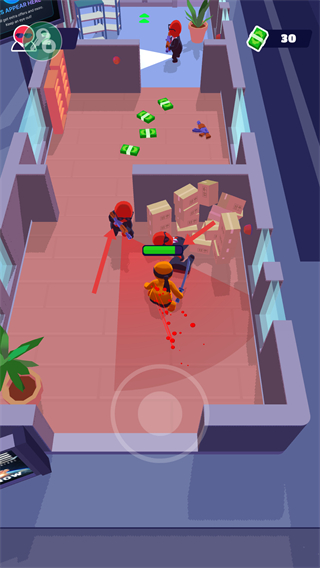 2、在場景中移動角色收集散落的金錢,同時留意敵人位置,利用地形和時機靠近敵人并將其擊殺。