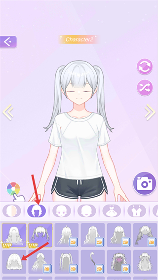 2、在裝扮界面點擊頭發圖標選擇喜歡的發型,可更換角色發型,根據自身情況選擇,打造獨特的頭發造型提升角色顏值。