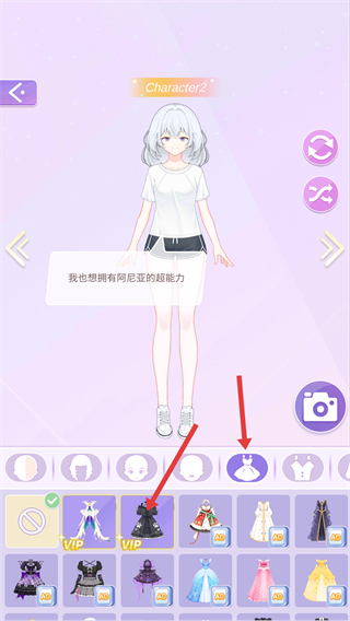 3、點擊裙子圖標選擇心儀的裙子款式可更換角色服裝,挑選適合的裙子為角色搭配出時尚的穿搭風格。
