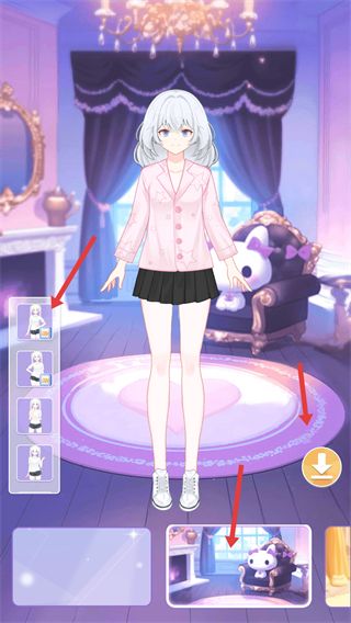 4、在場景界面可選擇不同的角色姿勢和背景場景,點擊下載按鈕保存裝扮成果記錄下魔法公主的美麗形象。