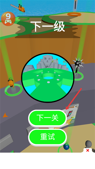 1、點擊下一關進入新的等級探索新場景,若對當前成績不滿意可選擇重試挑戰。