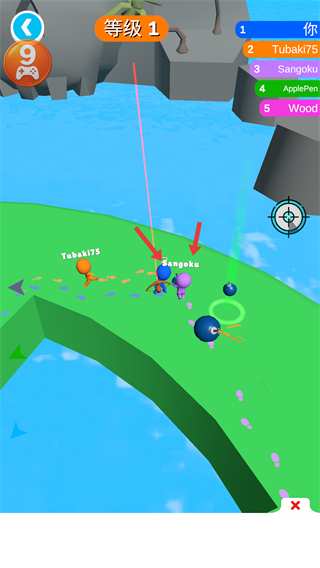 3、利用弓箭攻擊其他玩家爭奪資源和排名,注意躲避敵人的攻擊,同時尋找機會擊敗對手。