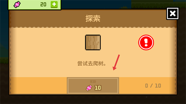 2、在探索界面嘗試去爬樹,完成任務可獲得糖果獎勵,糖果可用于解鎖新內容,關注任務提示,逐步完成探索目標。