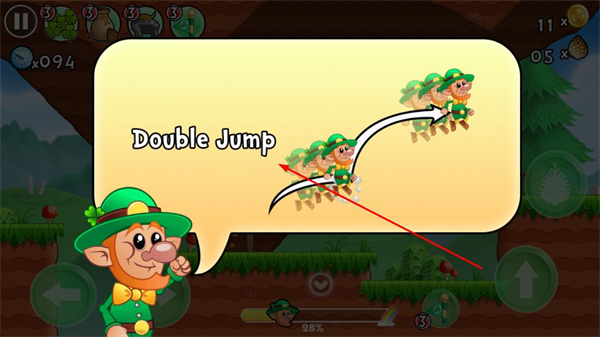 2、進入關卡后查看提示了解DoubleJump操作方式,操控精靈進行二段跳,掌握該技能以便在關卡中跨越障礙。