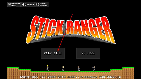 1、進入棒棒勇者大冒險游戲主界面,看到PLAYGAME和VSMODE選項,選擇PLAYGAME按鈕,進入游戲的存檔選擇頁面。