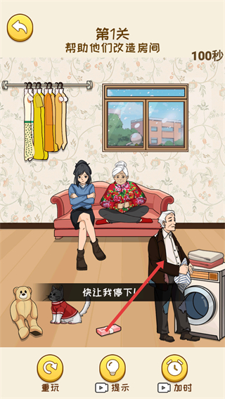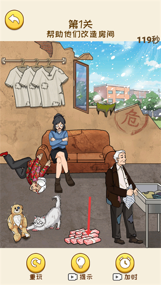 1、在關卡選擇界面點擊目標關卡如超能家人,進入對應關卡的房間改造任務,關卡以不同生活場景為主題。