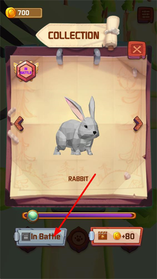 4、收集界面可查看已解鎖的角色如兔子,點擊InBattle可將其設為出戰角色,不同角色有不同漂移特性,助力關卡挑戰。