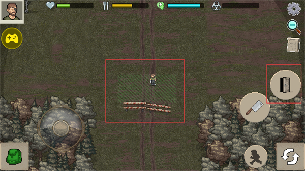 3、在森林外圍場景操控角色移動,遇到障礙物及時繞行,借助刀具等道具應對末日環境中的潛在危險。
