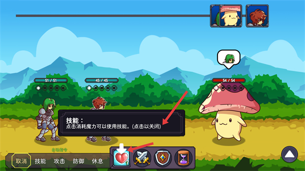 3、使用技能需消耗魔力點擊技能按鈕可釋放技能,技能能對敵人造成額外傷害或附帶特殊效果,合理使用技能可加快戰斗進程。