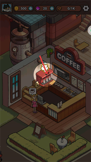 1、點擊店內的咖啡機設施,觸發咖啡制作流程,這是咖啡店的核心生產操作,可產出咖啡類商品。
