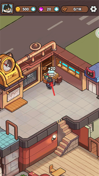 3、與店內的貓咪角色交互把貓糧喂給貓咪,可獲取資源獎勵如20道具,這類交互是游戲中資源積累的輔助方式。