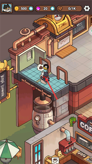 4、貓咪產出咖啡店后,繼續與場景中的設施或角色交互,完成咖啡店的生產、物資補給等流程,推動店鋪的經營進度。