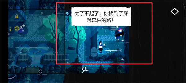 4、成功找到穿越森林的路后,與角色對話,獲取游戲反饋,完成該階段的解謎任務。