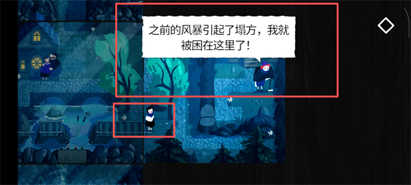 1、與被困角色對話,了解劇情背景,觸發解謎任務,開始尋找穿越森林的路徑。