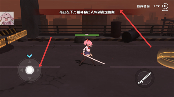 1、游戲開始時拖動左下方搖桿可移動人物到指定地點,這是基礎移動操作,熟練掌握可在場景中靈活走位,躲避敵人或到達目標區域。