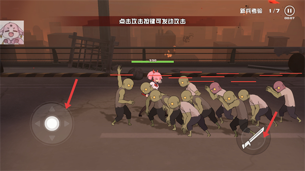 2、遇到僵尸群時點擊攻擊按鍵可發動攻擊,通過持續攻擊消滅僵尸,這是戰斗的核心操作,需及時使用以應對敵人的圍攻。