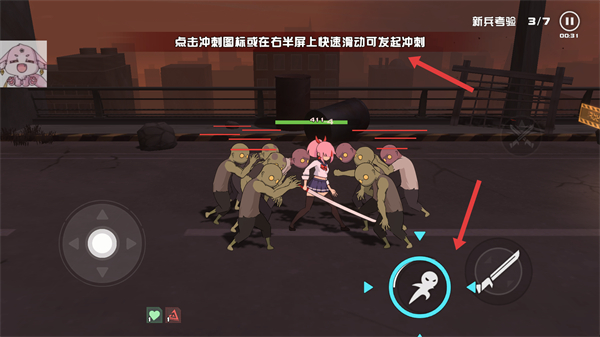 3、在被僵尸包圍等情況下點擊沖刺圖標或在右半屏快速滑動可發起沖刺,利用沖刺可快速擺脫敵人包圍,調整戰斗位置。