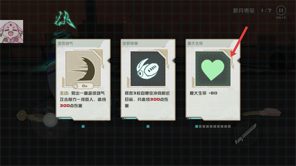 4、游戲中會出現技能和屬性提升卡片如最大生命80的卡片,選擇此類卡片可提升角色生存能力,助力后續戰斗,需根據戰斗需求合理選擇。