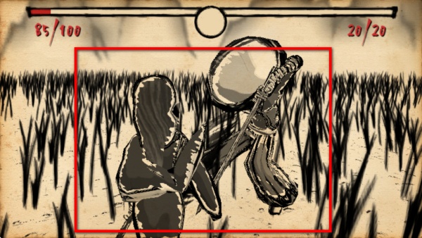 2、進入戰斗后,操控武士利用武器格擋敵人攻擊,在合適時機進行反擊,注意上方血條變化,保持自身血量健康。