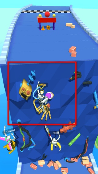 2、操控裝配好的機械角色在跑道上奔跑,與其他角色競技,注意收集道具,提升自身優勢,力爭在奔跑階段領先。