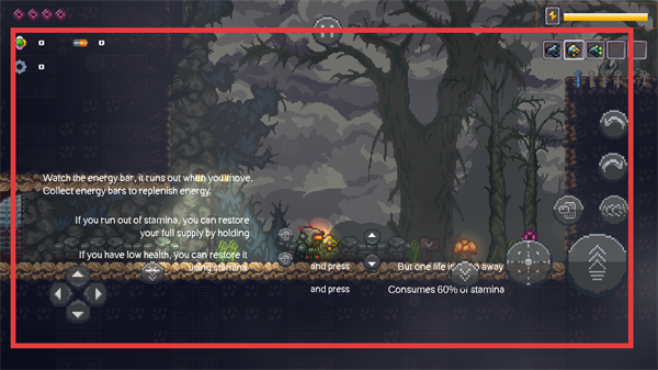 4、選擇完游戲難度即可進入游戲后,玩家即可操控角色進探索,注意觀察能量條,游戲中要收集能量條及時補充能量。