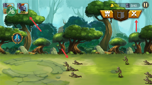 3、戰斗中要讓礦工開采金色水晶礦通過開采獲取金幣,金幣可用于招募士兵、升級建筑等。