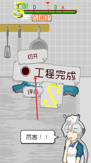 3、完成烹飪流程后顯示工程完成,代表該關卡的烹飪任務結束,會根據操作表現生成對應評價如S級。