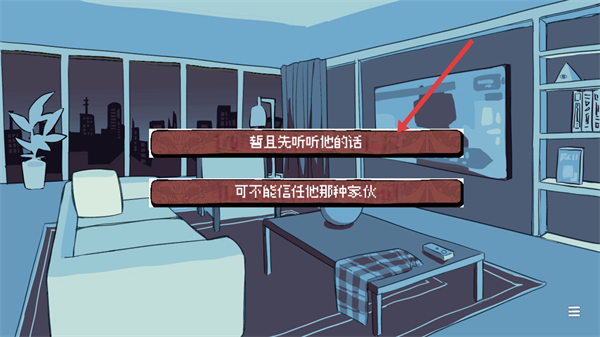 2、面對選擇暫且先聽聽他的話或可不能信任他那種家伙時,不同選擇會觸發不同劇情,可根據對劇情的判斷選擇,推進故事發展。