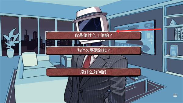 3、出現你是做什么工作的,為什么要跟蹤我,沒什么好問的選項時,選擇不同問題詢問,會得到不同回答,進而影響劇情走向,需謹慎選擇。