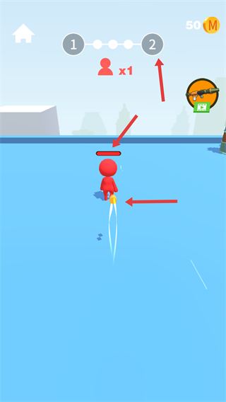 2、游戲中需關注目標的生命值擊中目標可推進關卡進度,同時收集金幣,金幣可用于升級武器傷害和離線收益等。