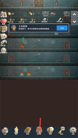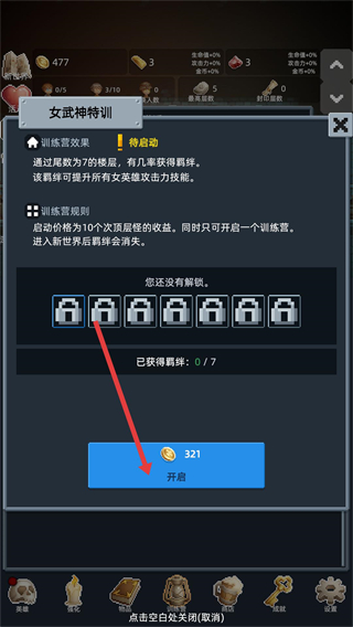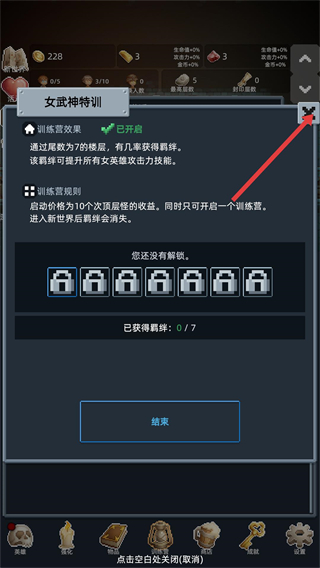 4、訓練開啟后點擊關閉按鈕,可返回地牢界面,訓練效果會持續生效,助力后續地牢闖關。
