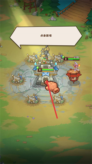 1、在戰斗場景中點擊箭塔,觸發其攻擊機制,可對范圍內的敵方單位發起攻擊,是基礎防御操作。