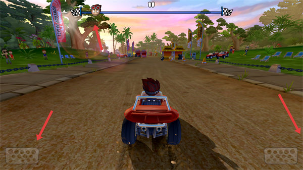 1、賽車時通過左右按鍵控制方向關注上方賽況條,了解與對手的距離,保持賽車在賽道中央,避免碰撞障礙物,爭取領先。