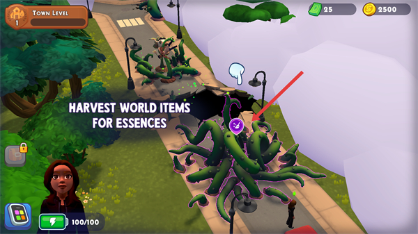 3、通過收獲世界物品獲取精華關注帶有紫色圖標的可互動物品,收集精華用于修復城鎮,提升城鎮等級和可探索區域。