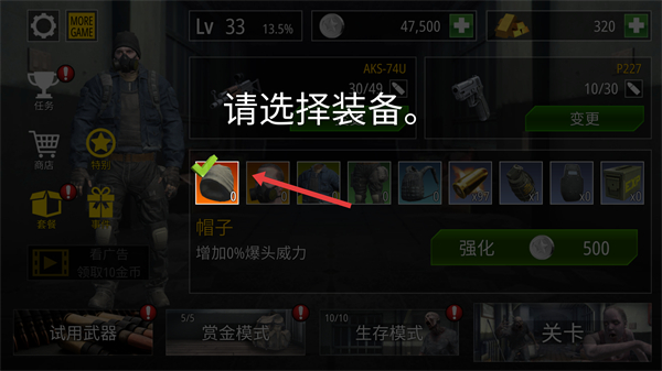 1、選擇裝備時優先搭配帽子等提升爆頭威力的飾品強化裝備可提升屬性,合理分配資源強化關鍵裝備提升戰斗能力。