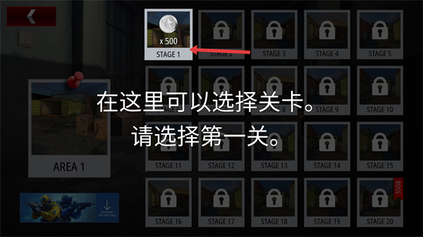 1、在關卡選擇界面優先選擇第一關逐步解鎖后續關卡,每關通關可獲得金幣獎勵,積累金幣用于武器強化和道具購買。