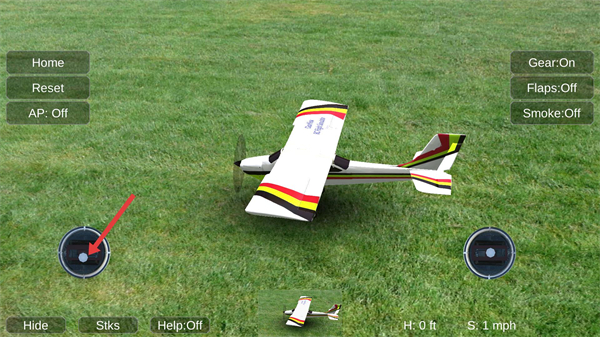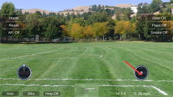 2、滑動左側搖桿調整油門,控制飛機動力輸出,這是起飛階段的核心操作,需逐步提升動力以實現平穩起飛。