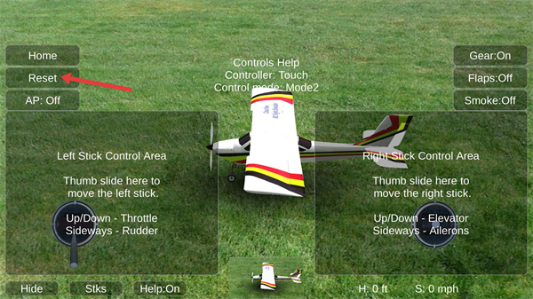 4、熟悉操控界面,當飛機出現損壞,點擊Reset可重置飛機狀態,適配不同飛行場景。