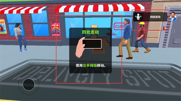 2、使用左手拇指移動,在超市中四處走動,探索不同區域,完成游戲任務。
