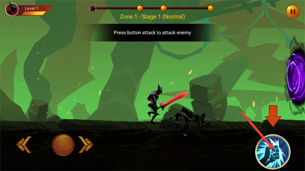 2、進入關卡,點擊底部攻擊按鈕對敵人發起攻擊,這是基礎戰斗操作,需精準觸發以打擊目標。