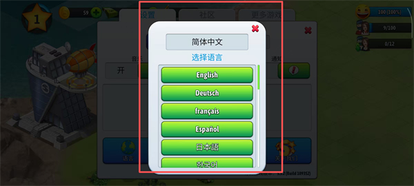2、進入設置界面,點擊語言選項,選擇簡體中文等語言,調整游戲語言設置,提升游戲體驗。