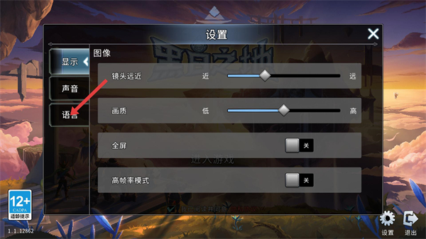 1、在啟動界面點擊進入游戲可開啟冒險,界面顯示適齡提示為12。