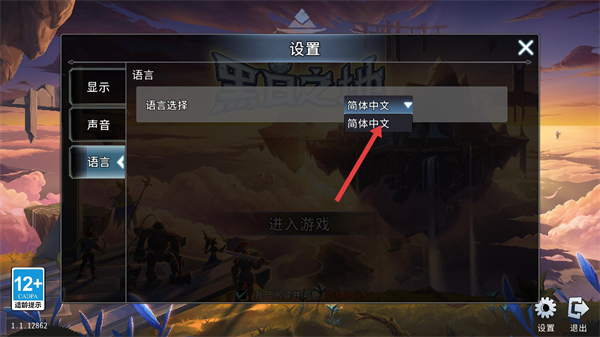 4、在語言選擇下拉菜單中確認選擇簡體中文,完成語言設置后即可關閉設置界面,進入游戲。