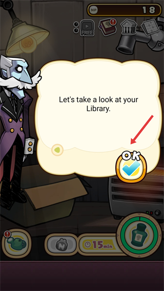 2、當出現角色提示查看圖書館時點擊OK按鈕進入圖書館界面,此操作可解鎖新的游戲內容,推動劇情發展。