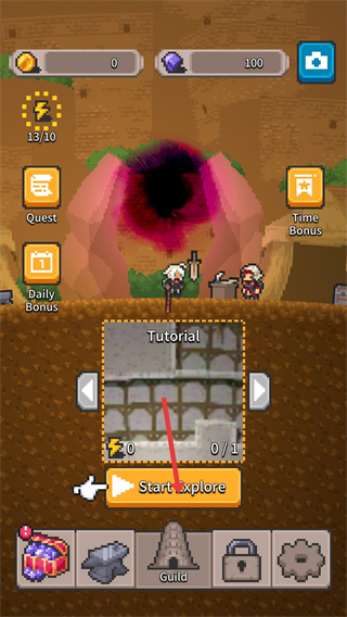 2、在主界面點擊Startexplore進入教程關卡,游戲分為日常探索與深層探索兩種模式,教程關卡用于熟悉操作。